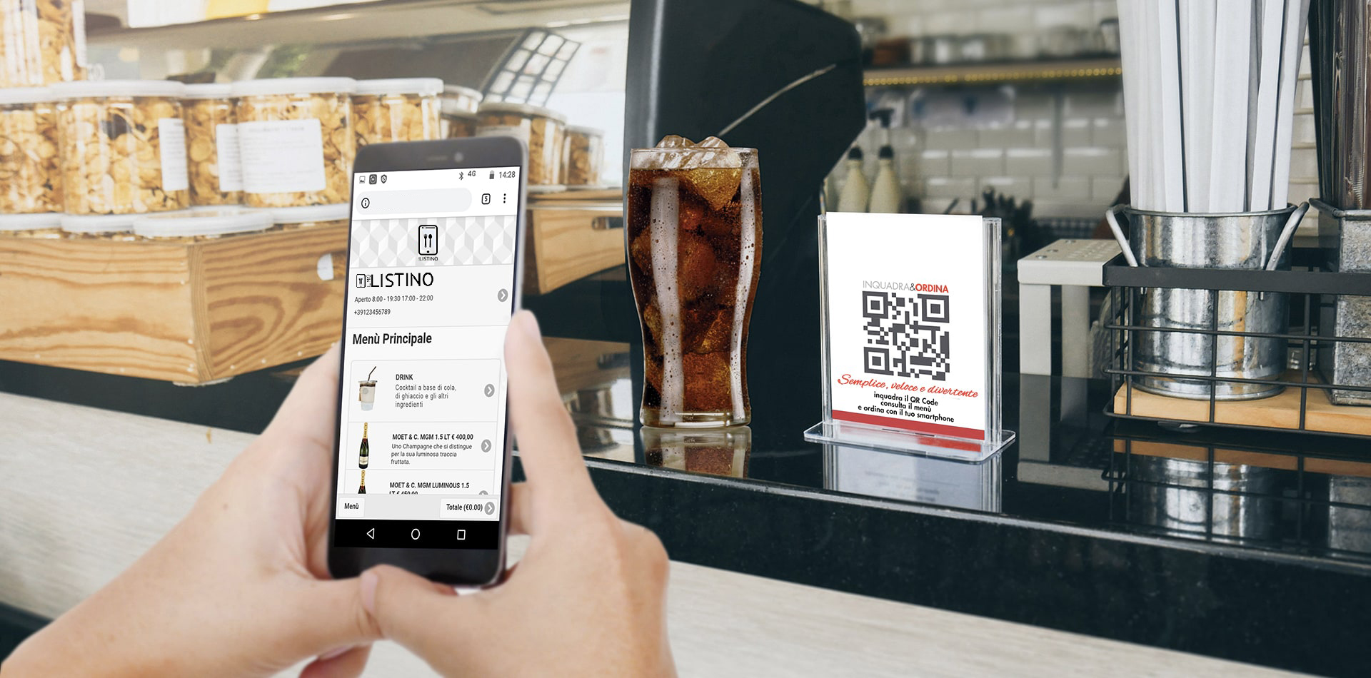 Ti forniremo un codice Qr del tuo ristorante collegato al vostro menu’ diviso per categorie. Il cliente tramite il suo smartphone scansiona il codice Qr ed accederà alla pagina del menu’. Per i servizi TakeAway e Delivery potrà visualizzarlo anche da casa attraverso il link ilmiolistino.it/nomeristorante